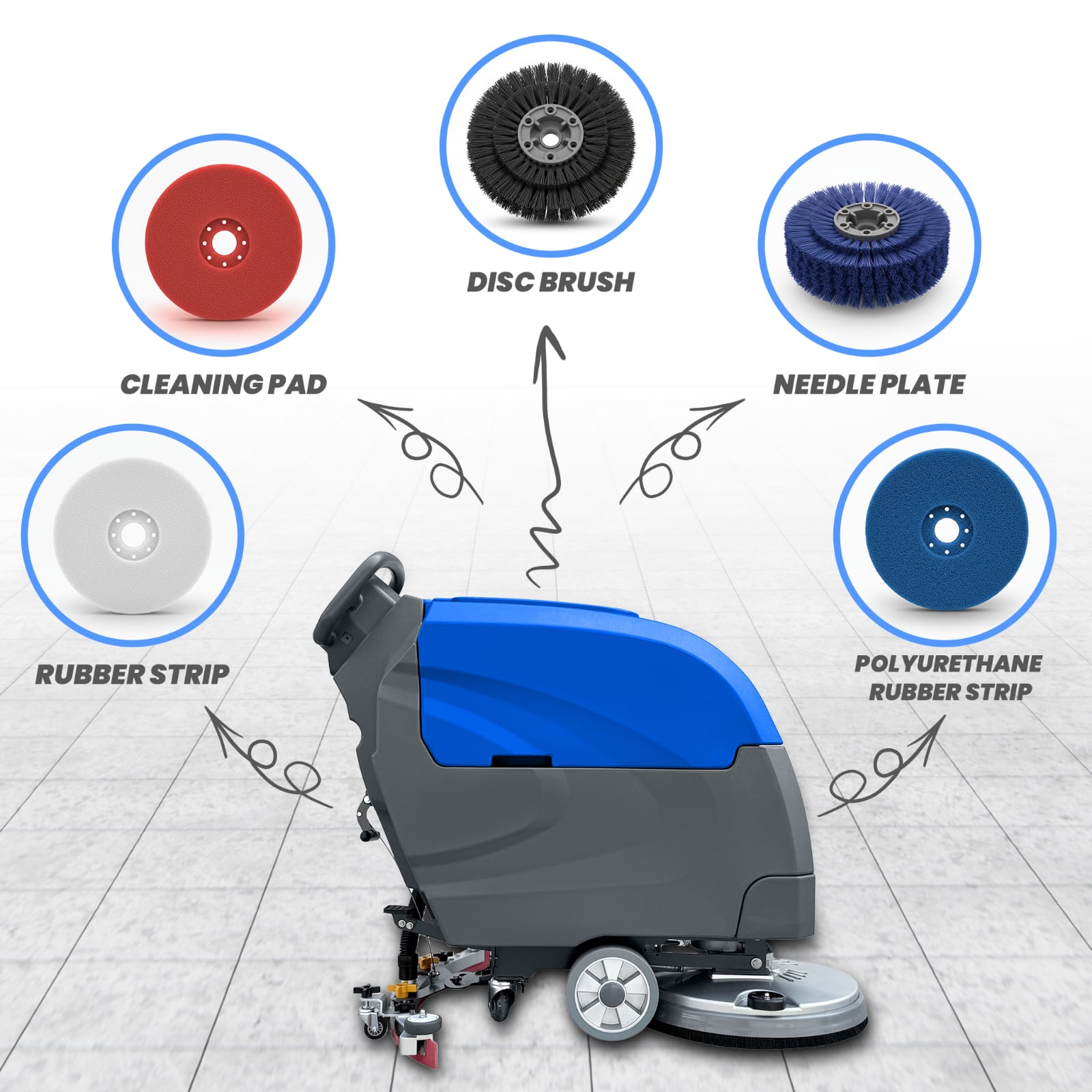 The ScrubX 50D is an advanced self-driving floor scrubber designed for efficient, high-performance cleaning in large commercial and industrial spaces. With a robust 500W brush motor and a 33.5-inch cleaning width, it delivers powerful scrubbing performance that ensures spotless results every time. Built with a 24V/100Ah battery system, it offers up to 4 hours of continuous operation, allowing you to clean more area in less time—up to 2000 sqm/h.