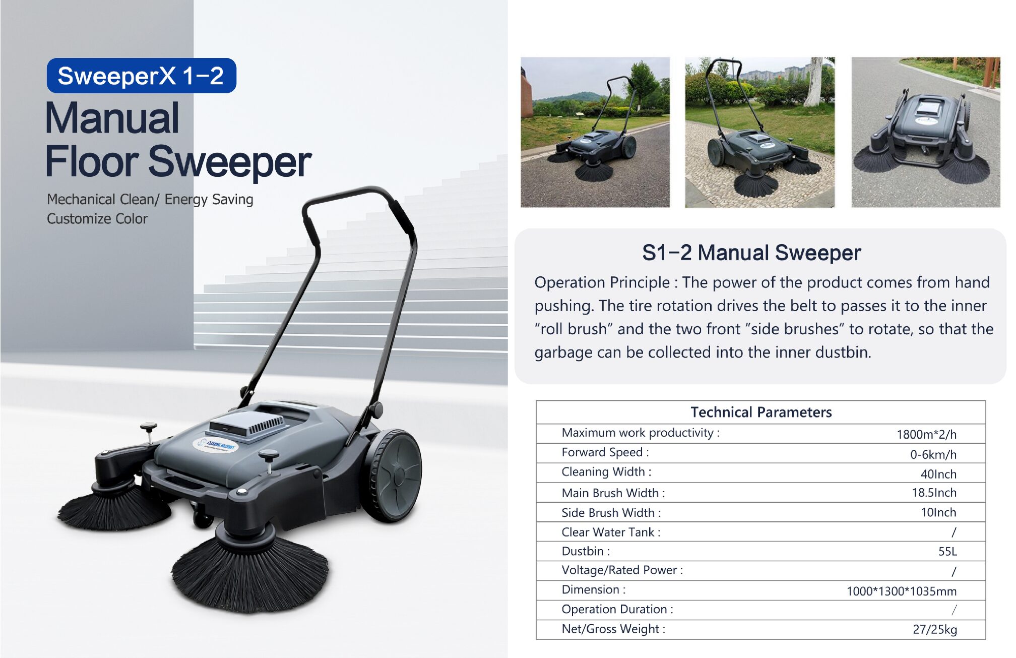 The SweeperX Manual Floor Sweeper is designed for efficient and effortless cleaning across medium to large floor spaces. Built with precision engineering, it combines wide cleaning coverage with lightweight maneuverability, making it ideal for both commercial and industrial facilities. Its durable design and easy-to-use controls ensure maximum productivity without the need for complex operation.